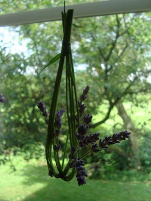 Så jag gjorde små Lavendel korgar och hängde dem i köksfönstret.